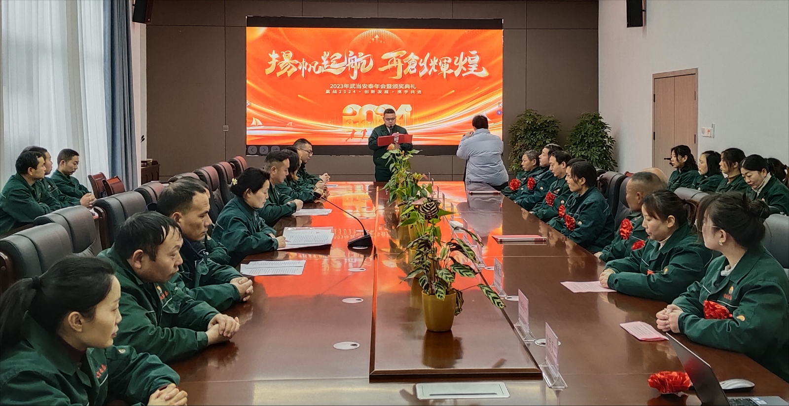 2月4日下午,湖北武當(dāng)安泰藥業(yè)有限公司在一樓會議室召開2023年度年會暨優(yōu)秀員工表彰大會。年會以“揚(yáng)帆起航,砥礪前進(jìn),再創(chuàng)輝煌”為主題,圍繞“領(lǐng)導(dǎo)致辭、表彰先進(jìn)、游戲互動、數(shù)字抽獎、團(tuán)體聚餐”等環(huán)節(jié)展開。